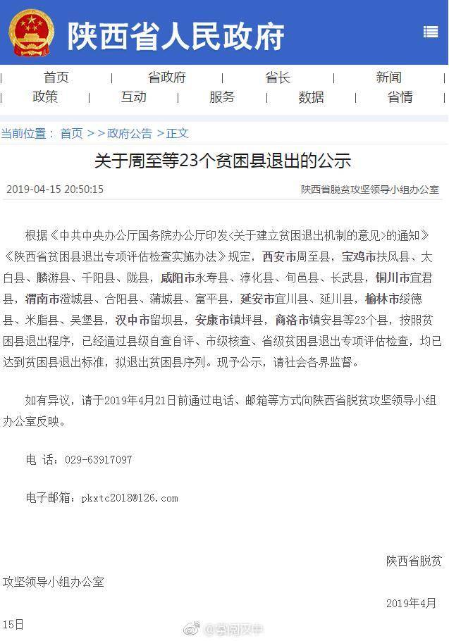 陜西省發(fā)布留壩等23個貧困縣退出公示