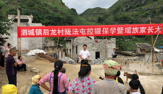 山路盤旋,挨家挨戶做工作,經(jīng)常找不到人,費時費力且效率不高。為此,駐后龍村第一書記于洋聯(lián)系凌云縣委統(tǒng)戰(zhàn)部、縣法院,召開了后龍村瑤族學(xué)生家長大會。先由村干部用瑤話動之以情,再由法院干警從義務(wù)教育法出發(fā)曉之以理,最后于洋講述從寒門學(xué)子到清華碩士的親身經(jīng)歷。經(jīng)過幾番全方位的思想動員,到2018年秋,后龍村已經(jīng)基本完成控輟保學(xué)工作任務(wù)。