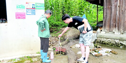 海星村網(wǎng)格員入戶調(diào)查群眾飲水安全情況。