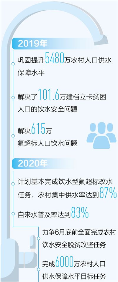 來自水利部的數(shù)據(jù)顯示,2019年,解決了101.6萬(wàn)建檔立卡貧困人口的飲水安全問題,鞏固提升了5480萬(wàn)農(nóng)村人口供水保障水平,解決了615萬(wàn)氟超標(biāo)人口飲水問題,超額完成年度目標(biāo)任務(wù)。