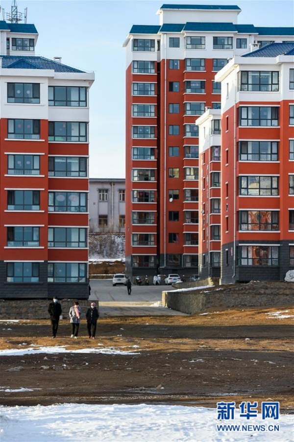 居民在內(nèi)蒙古烏蘭察布市卓資縣易地搬遷房福安小區(qū)內(nèi)散步(2020年3月26日攝)。新華社記者 連振 攝