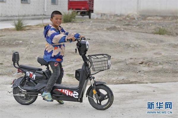 一名小學生在彩渠塘村騎電動車(8月2日攝)。近年來,西藏自治區(qū)多措并舉,實施易地扶貧搬遷,解決“一方水土養(yǎng)不起一方人”的發(fā)展困境,使搬遷戶實現(xiàn)穩(wěn)定脫貧、安置區(qū)加快發(fā)展,為鄉(xiāng)村振興奠定了堅實基礎。西藏拉薩市當雄縣羊八井鎮(zhèn)彩渠塘村的150戶683名村民是2017年底開始陸續(xù)從那曲、阿里、昌都等地區(qū)極為艱苦的地帶搬遷而來的。村民原來大多在高寒地區(qū)隨牧而居、沒水沒電、缺醫(yī)少藥。來到新村后,不僅衣食住行和醫(yī)療都有了保障,還靠羊八井地熱溫泉旅游入股分紅,發(fā)展綿羊育肥、手工加工合作社等集體經(jīng)濟和就近就便務工增加收入,村民們過上了幸福的小康生活。新華社記者 張汝鋒 攝