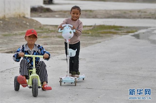 兩名兒童在彩渠塘村玩耍(8月2日攝)。近年來,西藏自治區(qū)多措并舉,實施易地扶貧搬遷,解決“一方水土養(yǎng)不起一方人”的發(fā)展困境,使搬遷戶實現(xiàn)穩(wěn)定脫貧、安置區(qū)加快發(fā)展,為鄉(xiāng)村振興奠定了堅實基礎。西藏拉薩市當雄縣羊八井鎮(zhèn)彩渠塘村的150戶683名村民是2017年底開始陸續(xù)從那曲、阿里、昌都等地區(qū)極為艱苦的地帶搬遷而來的。村民原來大多在高寒地區(qū)隨牧而居、沒水沒電、缺醫(yī)少藥。來到新村后,不僅衣食住行和醫(yī)療都有了保障,還靠羊八井地熱溫泉旅游入股分紅,發(fā)展綿羊育肥、手工加工合作社等集體經(jīng)濟和就近就便務工增加收入,村民們過上了幸福的小康生活。新華社記者 張汝鋒 攝