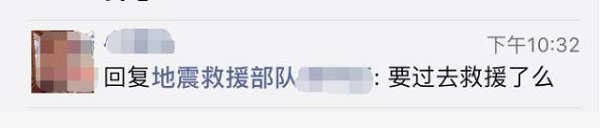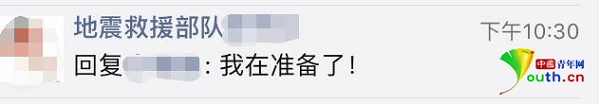 地震救援部隊(duì)在朋友圈回復(fù)朋友自己正在準(zhǔn)備,出發(fā)救援。中國青年網(wǎng) 宋莉 截圖。