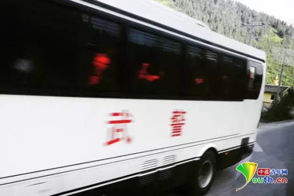 武警乘車去往災(zāi)區(qū)。網(wǎng)友@三木家的糖火柴供圖。