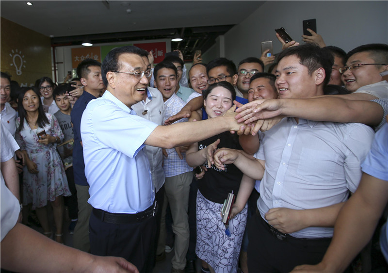 【李克強為職業(yè)農(nóng)民雙創(chuàng)鼓勁兒】“總理,我們將來想創(chuàng)業(yè)!”李克強10日來到陜西楊凌職業(yè)農(nóng)民創(chuàng)業(yè)創(chuàng)新園,正在農(nóng)忙的農(nóng)民紛紛圍攏上前,爭相向總理介紹創(chuàng)業(yè)計劃。該園區(qū)招引全國80多位農(nóng)民學習實訓,為其返鄉(xiāng)創(chuàng)業(yè)傳授經(jīng)驗。總理為他們鼓勁兒:“現(xiàn)在要先腳踏實地把技術(shù)學到手,未來祝你們創(chuàng)業(yè)成功?!?/p>