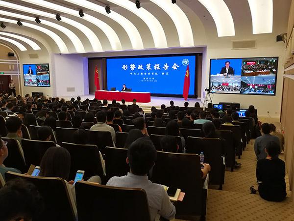 復(fù)旦大學(xué)在光華樓設(shè)立主會場,同時在楓林、張江、江灣校區(qū)開設(shè)視頻分會場,共計千余師生聽取報告,與市領(lǐng)導(dǎo)交流。