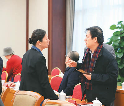在第十次全國文代會召開前夕,中國文聯(lián)黨組書記、副主席趙實(左)11月29日到駐地看望與會代表。