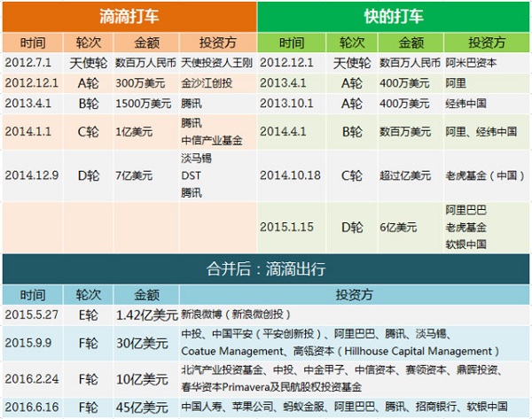 事實上,已經占據(jù)中國互聯(lián)網(wǎng)出行市場主導地位的滴滴Uber并沒有停止融資的步伐,而隨著融資不斷推進,二者開始擁有越來越多的共有投資方。