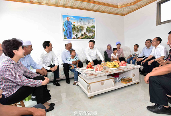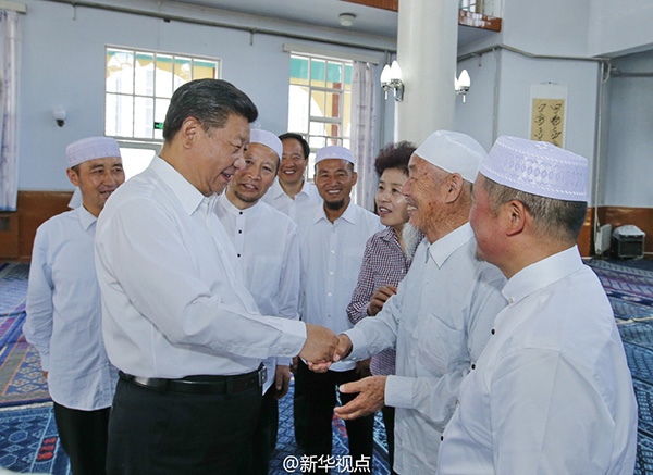 新華網(wǎng)北京7月19日電習(xí)近平總書(shū)記19日上午來(lái)到寧夏回族自治區(qū)銀川市新城清真寺了解宗教活動(dòng)開(kāi)展情況。在禮拜大殿,習(xí)近平與寧夏伊斯蘭教界人士親切交流,通過(guò)他們向廣大穆斯林群眾致以親切問(wèn)候和良好祝愿。習(xí)近平說(shuō),我國(guó)的各民族和宗教是在5000多年的文明史中孕育發(fā)展起來(lái)的,只有落地生根才能生生不息。習(xí)近平希望大家繼續(xù)發(fā)揚(yáng)愛(ài)國(guó)愛(ài)教傳統(tǒng),在脫貧致富奔小康的道路上發(fā)揮積極作用。在場(chǎng)的伊斯蘭教界人士表示,將認(rèn)真貫徹落實(shí)全國(guó)宗教工作會(huì)議精神,既念好古蘭經(jīng),又念好致富經(jīng),為國(guó)家發(fā)展?fàn)I造和諧的環(huán)境。(文字:新華社記者霍小光,攝影:新華社記者鞠鵬、李濤據(jù)新華社“新華視點(diǎn)”微博報(bào)道)