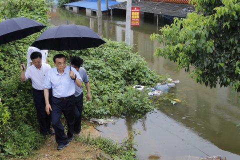 得知岳陽白石嶺城中村內(nèi)澇嚴重,積水最深時超過4米,李克強一下火車就直奔這里。