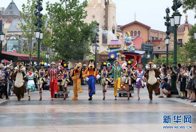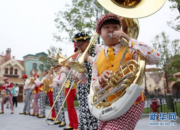6月15日,表演者在上海迪士尼樂園內(nèi)演出。 6月16日,上海迪士尼度假區(qū)將正式開園迎客。 新華社記者 丁汀 攝