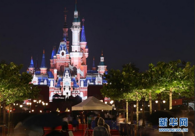 6月15日,游客在上海迪士尼樂園內(nèi)欣賞夜景。 6月16日,上海迪士尼度假區(qū)將正式開園迎客。 新華社記者 裴鑫 攝