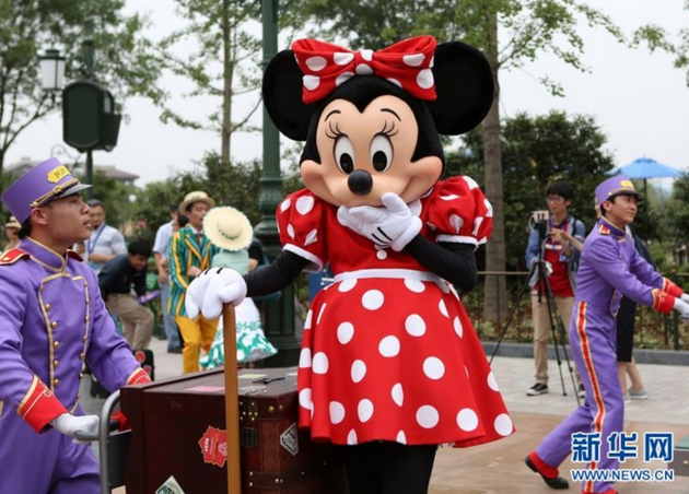 6月15日,經(jīng)典卡通人物“米妮”在進(jìn)行花車巡游。 6月16日,上海迪士尼度假區(qū)將正式開園迎客。 新華社記者 丁汀攝