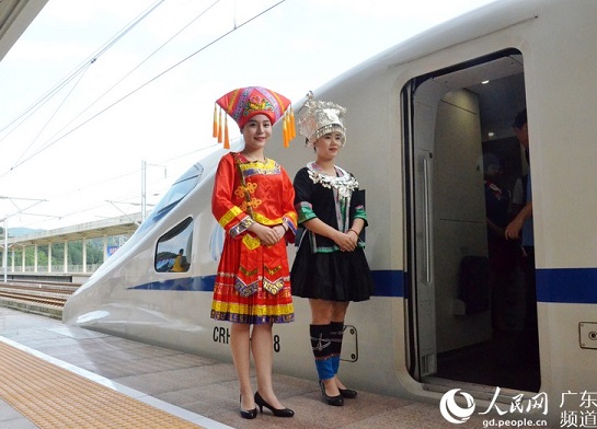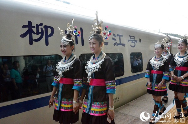 5月15日下午1時06分,從廣州開往廣西柳州三江南站的D2972次動車組列車正點駛出廣州南站。當天下午5時43分,D2975次“柳州三江號”動車組列車從三江南站始發(fā)站正式啟程,風馳電掣般駛往廣州南站。據悉,這是全國首趟始發(fā)、終點站為少數民族自治縣的動車組列車。