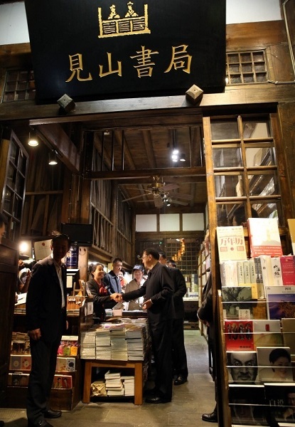 “這兒有個書店??!”剛剛走進巷口沒多遠,李克強就被“見山書局”的招牌所吸引,徑直走了進去。