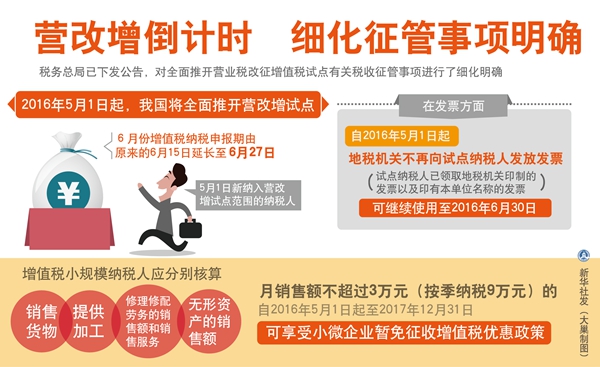 政策執(zhí)行方面,財政部、稅務(wù)總局布置各級財稅部門要不折不扣落實(shí)好各項(xiàng)政策,確保政策落地。通過全面培訓(xùn),使財稅干部和企業(yè)財務(wù)人員吃準(zhǔn)吃透政策要求,避免因?qū)φ呃斫獠坏轿?、操作不?zhǔn)確造成企業(yè)稅負(fù)增加,讓企業(yè)充分享受改革紅利。并加強(qiáng)對試點(diǎn)運(yùn)行情況的跟蹤分析,對于試點(diǎn)反映的新情況、新問題,及時采取措施,予以妥善解決。