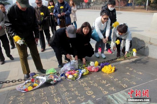 3月31日,遼寧沈陽,民眾來到沈陽抗美援朝烈士陵園紀(jì)念碑前祭奠英靈。當(dāng)日13時(shí)許,第三批36具在韓國的中國志愿軍烈士遺骸運(yùn)抵沈陽抗美援朝烈士陵園。此前,韓方已向中方移交505具中國軍人遺骸。中新社記者孫昊聲攝