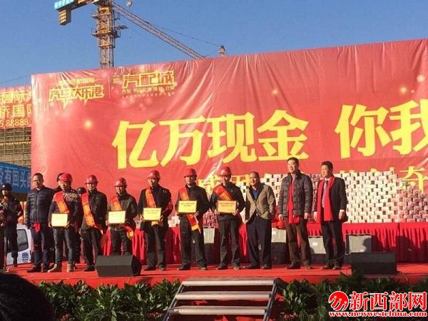 ??但記者在西安了解到,三橋國際汽配城億萬元現(xiàn)金現(xiàn)場發(fā)放給民工兄弟,同時對這一年辛苦建設(shè)、作出突出貢獻(xiàn)的班組、個人進(jìn)行嘉獎授牌。