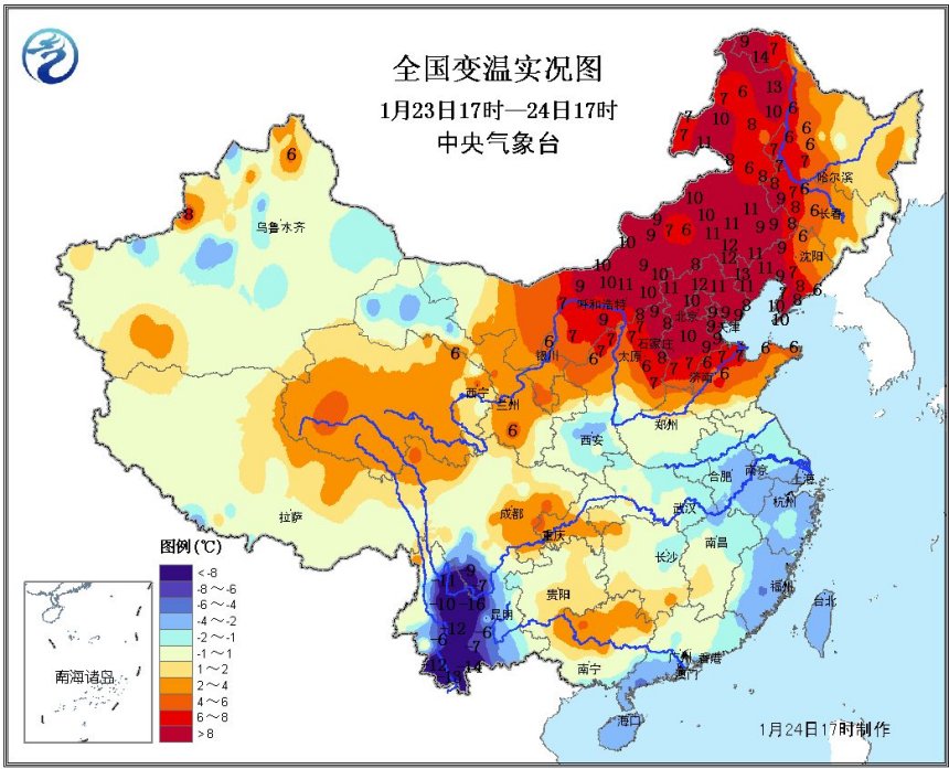 隨著冷空氣主體移動到南方,從今天開始,我國北方大部地區(qū)出現(xiàn)明顯回暖;今17時較昨17時,內(nèi)蒙古地區(qū)大部、華北、東北等地氣溫普遍回升8~10℃,局地升溫幅度達(dá)12~14℃。