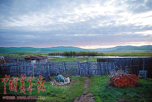 從海拉爾出發(fā),向北行駛4個(gè)小時(shí)左右,穿過(guò)陳巴爾虎旗草原和大興安嶺白樺林之后,來(lái)到恩和村。恩和村坐落在一個(gè)很大的山間谷地,得爾布爾河的支流淺淺地淌過(guò)這個(gè)小村莊,形成一片彎彎曲曲的濕地,河邊是起伏的草場(chǎng)和稀疏的樹(shù)林。周邊的山坡線條和緩,山坡上布滿了尚未變綠的草,白樺林一直延伸到山腳。
