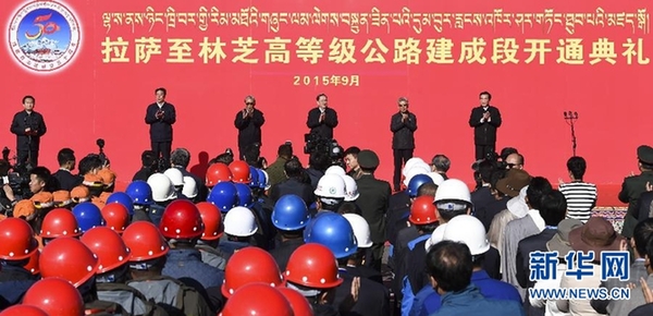 9月9日,拉薩至林芝高等級公路建成段開通儀式在達(dá)孜縣舉行。前來參加西藏自治區(qū)成立50周年慶祝活動的中共中央政治局常委、全國政協(xié)主席、中央代表團(tuán)團(tuán)長俞正聲,率中央代表團(tuán)部分成員出席,并對公路通車表示祝賀。新華社記者謝環(huán)馳攝