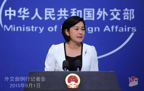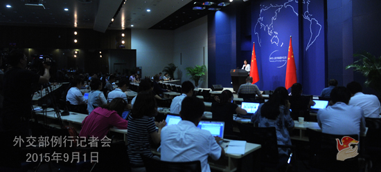 原標(biāo)題:2015年9月1日外交部發(fā)言人華春瑩主持例行記者會