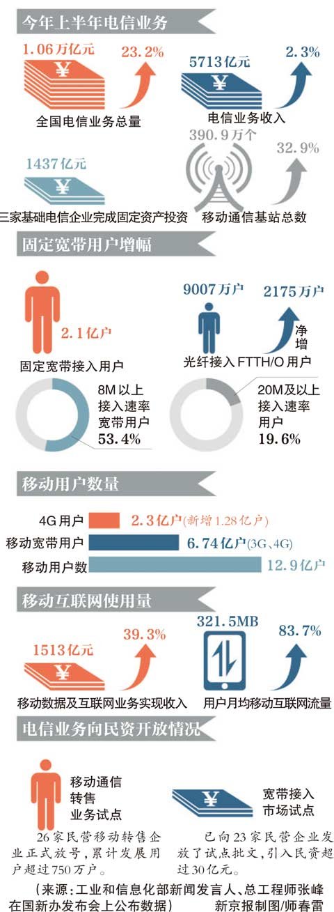 10月底前,約2000萬使用銅線技術(shù)接入的固定寬帶用戶,將由4Mbps以下接入速率,免費(fèi)提速至4Mbps,中國移動(dòng)和中國聯(lián)通也或?qū)⑼瞥龈髯悦嫦蛉珖苿?dòng)用戶、每月50-60元包含2GB流量的資費(fèi)套餐。
