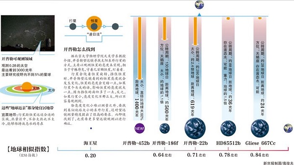 2013年初,開普勒任務(wù)太空天文臺的天文學(xué)家也曾宣布發(fā)現(xiàn)KOI-172.02,稱是類似地球的系外行星的候選者。今年3月,在一次天文學(xué)大會上,有消息傳出,開普勒望遠鏡發(fā)現(xiàn)了五個行星體系,其位于恒星的可居住帶。