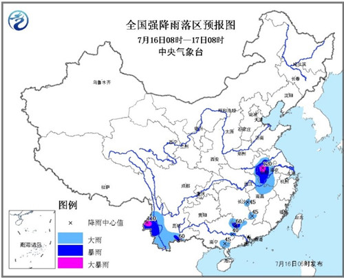 據(jù)中央氣象臺(tái)網(wǎng)站消息,中央氣象臺(tái)7月16日6時(shí)發(fā)布暴雨藍(lán)色預(yù)警,預(yù)計(jì),7月16日08時(shí)至7月17日08時(shí),河南東南部、湖北東部、安徽大部、江西北部、廣西東部、云南西部等地有大雨或暴雨。