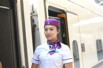 5時(shí)10分,記者走上站臺(tái),流線型的動(dòng)車已經(jīng)停在鐵軌上。這趟動(dòng)車共8節(jié)車廂,586個(gè)座位,除了1號(hào)車廂和8號(hào)車廂座位是一等座外,其余均為二等座。一等座一排有4個(gè)座位,二等座一排有5個(gè)座位,乘坐非常舒適。車上干凈整潔,空氣清新,還有為殘疾人特設(shè)的洗手間和乘坐區(qū)。另外,還為乘客提供2元一瓶的礦泉水和15元一份的盒飯等食物。