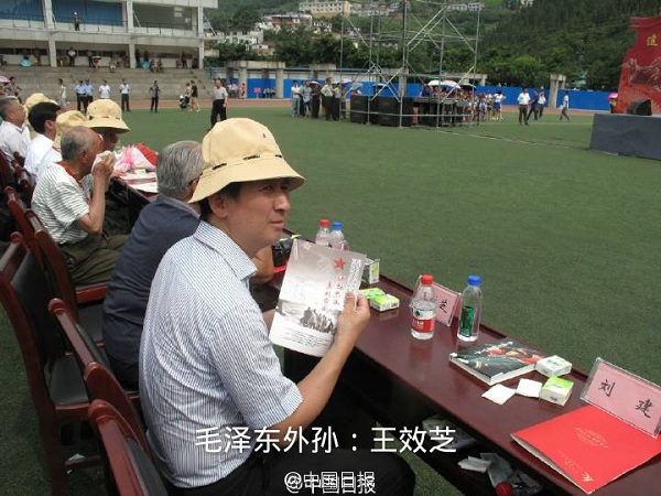 中國(guó)日?qǐng)?bào)【長(zhǎng)征四渡赤水80周年紀(jì)念活動(dòng)毛澤東和朱德外孫出席】24日,紅軍長(zhǎng)征四渡赤水戰(zhàn)役勝利80周年紀(jì)念活動(dòng),在四川古藺縣舉行。毛澤東主席外孫王效芝、朱德元帥外孫劉建,陳毅元帥之子陳昊蘇、羅榮桓元帥之子羅東進(jìn)、陳賡大將之子陳知庶等紅軍后代出席參加活動(dòng)。(記者黃志凌)