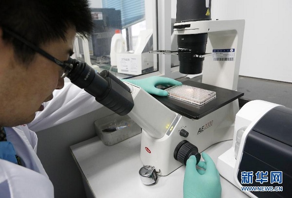 動物實驗有效復旦大學醫(yī)學分子病毒學教育部/衛(wèi)生部重點實驗室姜世勃在講述對中東呼吸綜合征(MERS)病毒具有高抑制活性的全人源單克隆抗體m336的作用過程(6月17日攝)。近日,記者從復旦大學獲悉,復旦大學基礎醫(yī)學院與美國國立衛(wèi)生院共同開發(fā)出一種對中東呼吸綜合征(MERS)病毒具有高抑制活性的全人源單克隆抗體m336,動物試驗效果顯著。新華社記者丁汀攝