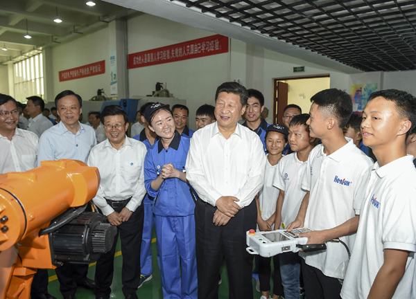習(xí)近平考察職校共勉“崇德尚能勵(lì)學(xué)敦行”