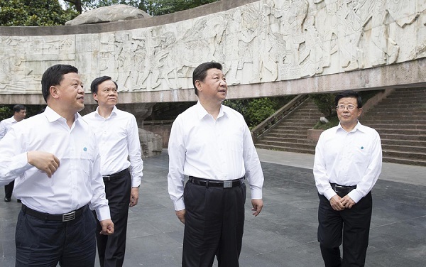 新華網(wǎng)北京6月16日電據(jù)新華社客戶端報(bào)道,藍(lán)天白云,青松翠柏。習(xí)近平總書記16日離京來到貴州遵義考察,一下飛機(jī)就直奔紅軍山烈士陵園,向紅軍烈士紀(jì)念碑敬獻(xiàn)花籃。紀(jì)念碑四周的浮雕展現(xiàn)了當(dāng)年紅軍浴血奮戰(zhàn)的場(chǎng)景。在“突破烏江天險(xiǎn)”浮雕前,總書記駐足感嘆:“當(dāng)時(shí)要是過不去就危險(xiǎn)了……”碑上“紅軍烈士永垂不朽”8個(gè)字是鄧小平同志題寫的,他佇立凝望,聽取介紹。這是黨的十八大后習(xí)近平總書記第一次來黔考察。
