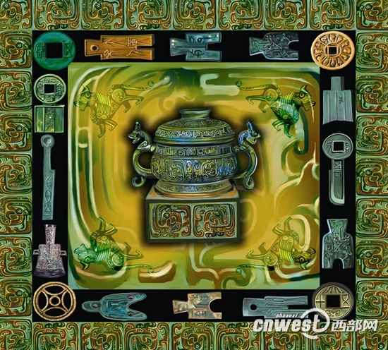 西周的青銅器,秦代的兵馬俑,女皇武則天,農(nóng)民畫與剪紙……古都西安悠久燦爛的歷史,濃縮成一系列的符號,被繪制在了一條條絲巾上。