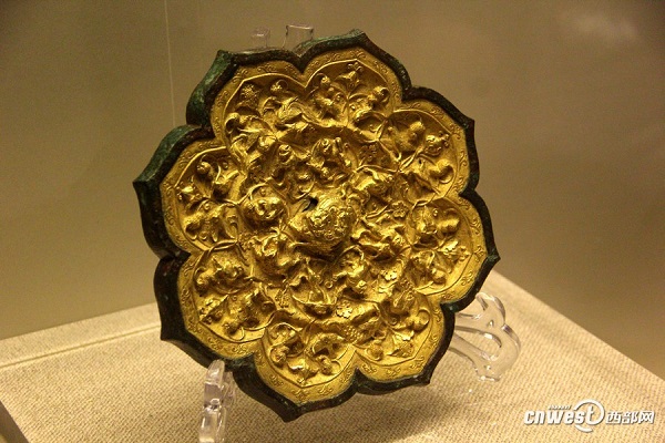 《舊唐書》記載“太宗嘗賜金背鏡一面,以表其清鑒焉?!睋?jù)專家推斷,應(yīng)該指的就是這種背面貼有金殼的銅鏡,而這件出土于西安長(zhǎng)安區(qū)的瑞獸葡萄紋銅鏡,則是目前唯一發(fā)現(xiàn)的。