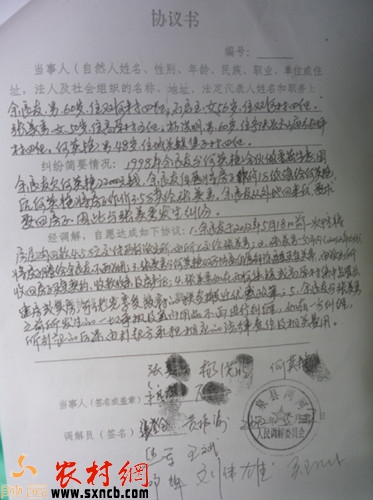 石泉縣兩河鎮(zhèn)調(diào)解協(xié)議書。