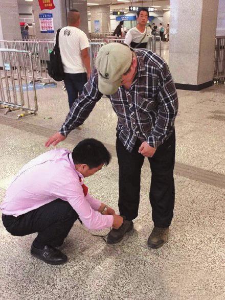 “其實(shí)我當(dāng)時(shí)沒想什么。鞋帶松了,他行動(dòng)不便,我擔(dān)心在乘車的途中,松脫的鞋帶可能卷入電梯或車輛機(jī)件中會(huì)發(fā)生危險(xiǎn),以前曾發(fā)生過類似的情況,都是舉手之勞的事?!蓖鹾:秸f。
