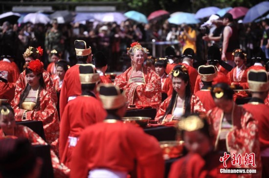 5月2日,“予我三天·還你千年”第二屆重慶酉陽(yáng)桃花源大型傳統(tǒng)漢式集體婚典在桃花源景區(qū)盛大啟幕。