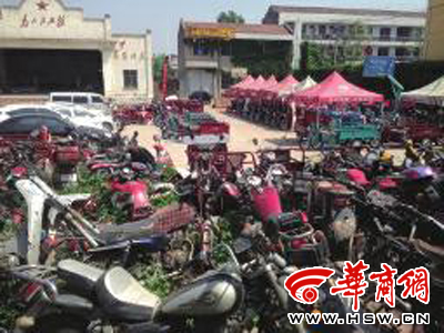 27日,眉縣橫渠鎮(zhèn)廣場(chǎng)上擺滿了摩托車