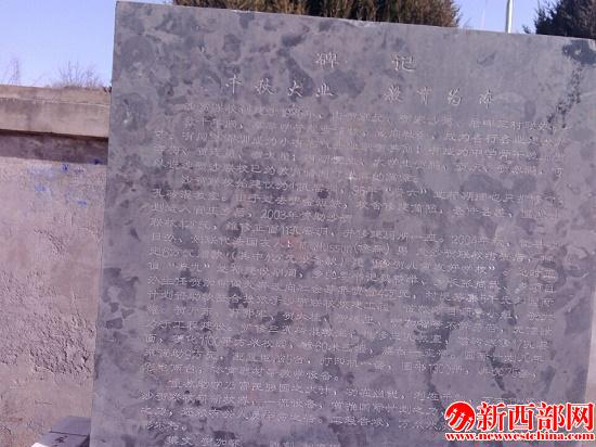 新西部網(wǎng)訊(記者 馮永春)兩扇銀白色鐵柵欄校門(mén)由“鐵將軍”日夜把守,門(mén)口鐫刻著“千秋大業(yè)、教育為本”的石碑上記載著學(xué)校的由來(lái),校園內(nèi)齊腰高的雜草叢銹蝕著搖搖欲墜的籃球架子及角落里散亂的幾件兒童娛樂(lè)器械,破殘的門(mén)窗與較新亮的窯洞教室形成一幅不要和諧的畫(huà)面。一展日久失色的破損紅旗如光桿司令般迎風(fēng)招展向人們昭示著它往日的光鮮。