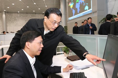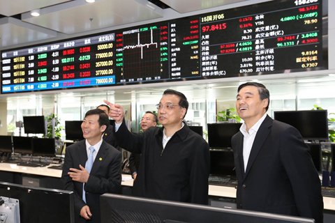 4月17日,中共中央政治局常委、國(guó)務(wù)院總理李克強(qiáng)來(lái)到國(guó)家開(kāi)發(fā)銀行和中國(guó)工商銀行考察并主持召開(kāi)座談會(huì)。這是李克強(qiáng)考察國(guó)家開(kāi)發(fā)銀行。圖/新華社