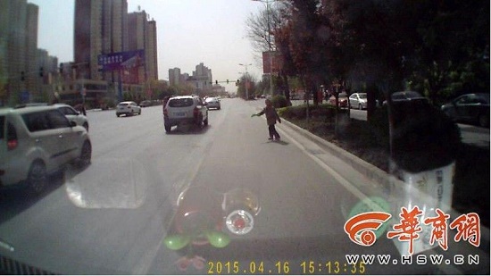 4月16日下午5時許,網(wǎng)友“創(chuàng)業(yè)者李鑫”微博爆料稱:“行車至咸陽世紀(jì)大道海泉灣附近,被一老婦一年輕女子合伙碰瓷,幸虧眼尖手快并安裝有行車記錄儀,請相關(guān)部門重視此類喪心病狂的行為,太寒心了!”