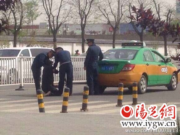 記者聯(lián)系上了當(dāng)時(shí)就在現(xiàn)場(chǎng)的出租車司機(jī)張師傅,他告訴記者,昨天上午十點(diǎn)半左右,自己開車到北客站附近,在北客站與文景路丁字口看到一位五六十歲的出租車司機(jī)跪在地上給三名穿著制服的運(yùn)政工作人員磕頭,其中兩人一直要把司機(jī)拉起來,有一人則趴在后備廂開罰單。旁邊公交站牌等車的人,看到這一幕紛紛拿起手機(jī)拍照,而出租車司機(jī)絲毫沒有起來的意思。