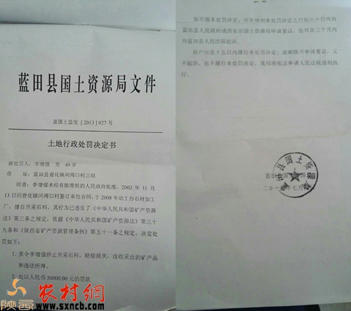 藍(lán)田縣國(guó)土局的處罰決定書