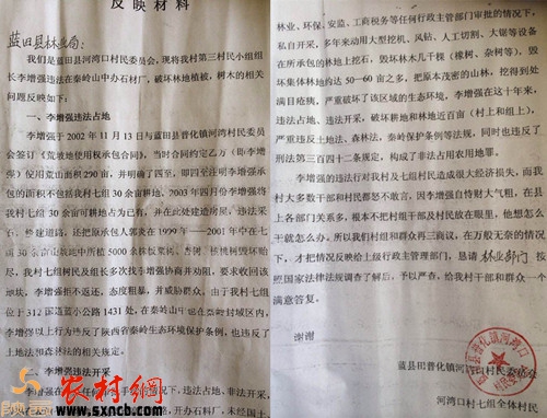 河灣村村民給藍(lán)田縣林業(yè)局的反映材料