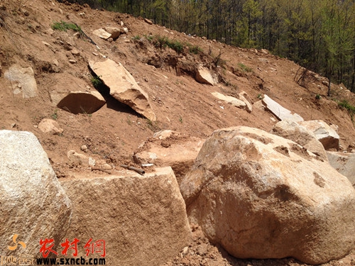 隨后,記者在河灣口村委會(huì)見(jiàn)到到該村村主任李學(xué)選等村干部。據(jù)他們介紹,早在2002年11月份,村民李增強(qiáng)與藍(lán)田縣河灣村村委會(huì)簽訂了《荒坡地使用權(quán)承包合同》,約定使用荒山面積290畝,其中不包括七組的30余畝耕地,但2003年四月份,李增強(qiáng)便在合同簽訂范圍之外強(qiáng)行將7組的30余畝耕地占為己有,在此違法采石修建房屋,同時(shí)還將原承包戶在林地上的果樹5000余株毀壞,共占用山坡林地30余畝,大面積采石,將原本茂密的山林挖的滿目瘡痍。