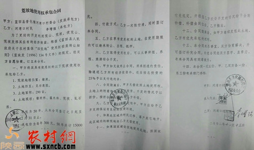 村民李增強(qiáng)與藍(lán)田縣河灣村村委會(huì)簽訂的《荒坡地使用權(quán)承包合同》