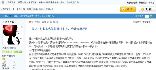 榆林一村長(zhǎng)實(shí)名舉報(bào)原村支書.會(huì)計(jì)貪腐行為